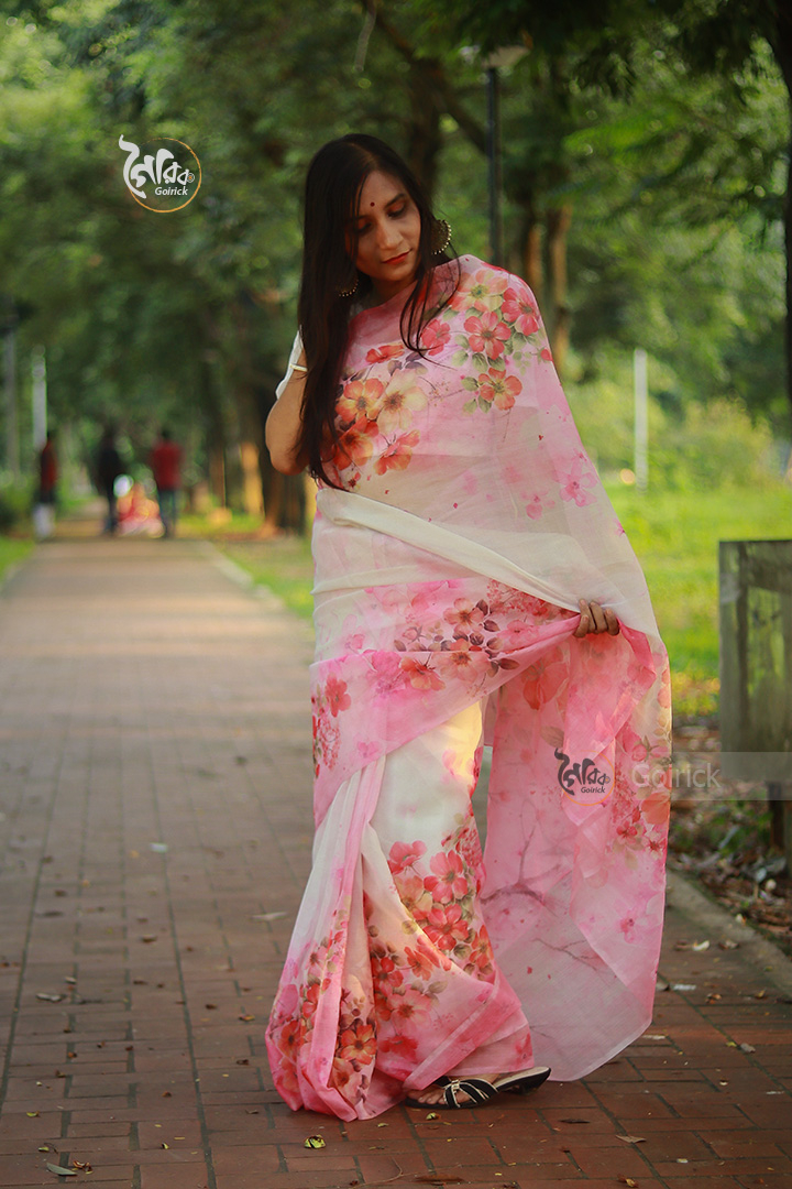 ম্যাটেরিয়াল : টাঙ্গাইল মসলিন, এটা সিল্ক এর একটি ভ্যারিয়েন্ট দেখতে অনেকটা রাজশাহীর মসলিনের মতো।