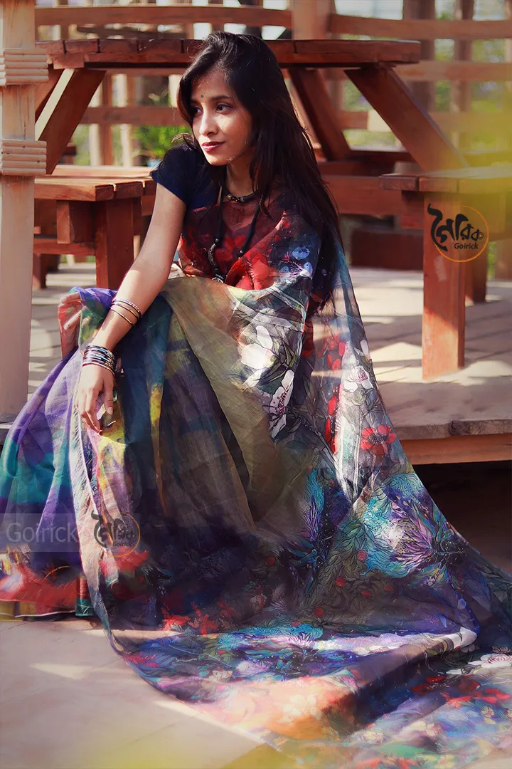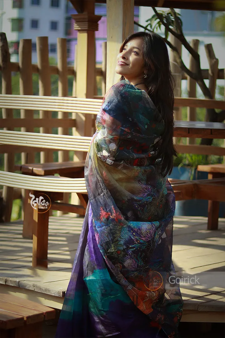 ম্যাটেরিয়াল : টাঙ্গাইল মসলিন, এটা সিল্ক এর একটি ভ্যারিয়েন্ট দেখতে অনেকটা রাজশাহীর মসলিনের মতো।